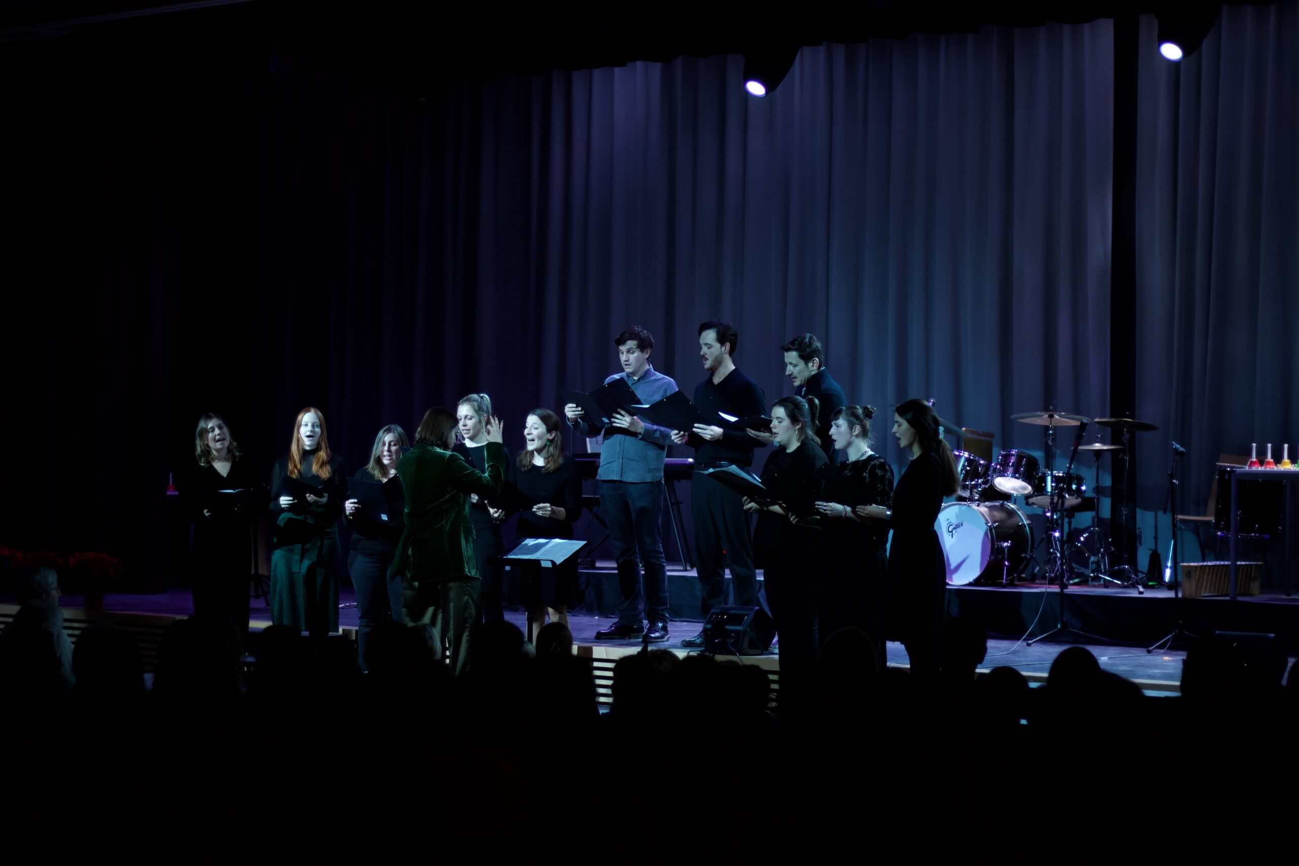 Bis auf den letzten Platz war sie besetzt – unsere Schulaula, als am Mittwoch vor den Weihnachtsferien Schulchöre, Orchester, Drum Kids sowie die Schulband und zahlreiche Solisten und Solistinnen ihre über 400 Gäste mit auf eine stimmungsvolle musikalische Reise nahmen: Von Klassikern wie „In der Weihnachtsbäckerei“ von Zuckowski, über „Experience“ von Ludovico Enaudi bis hin zu „Fix you“ von Coldplay reichte das Programm.