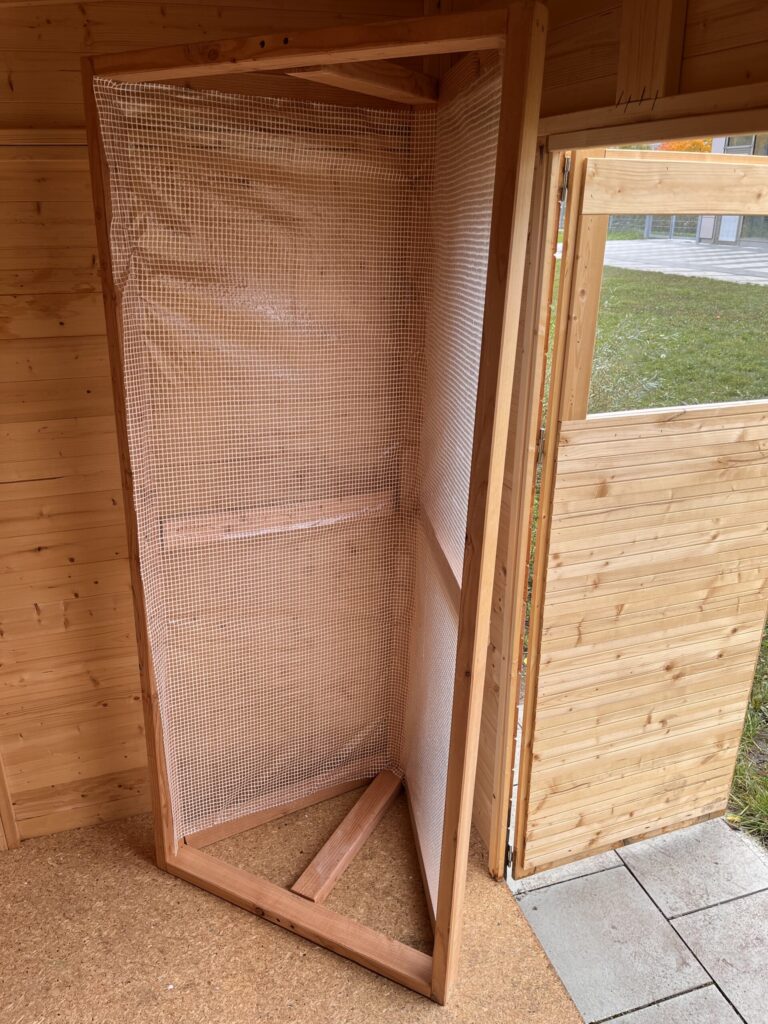 Die Schülerinnen und Schüler der 8. Jahrgangsstufe haben sich unter dem Vorzeichen der Biodiversität den Bau eines Vogelhauses vorgenommen. Die Planung, Konzeption und der Bau des Vogelhauses übernahmen sie in Eigenregie. Außerdem unterstützten sie den Wahlkurs Schulgarten, indem sie eine Überdachung für unsere Hochbeete planten und bauten.